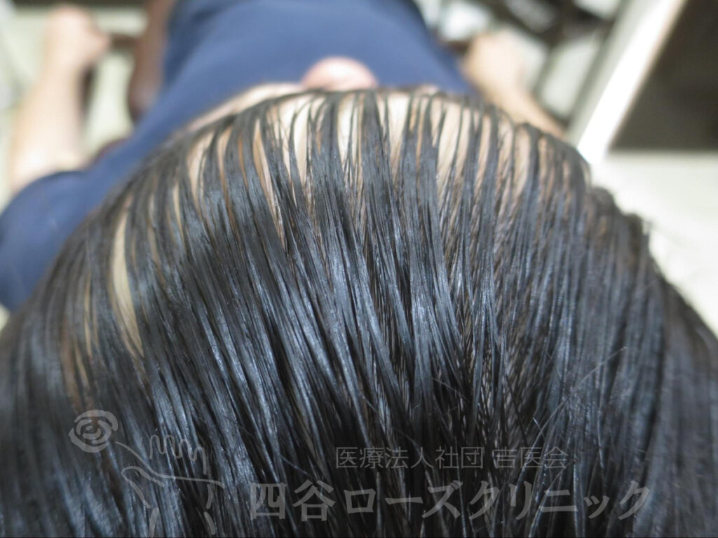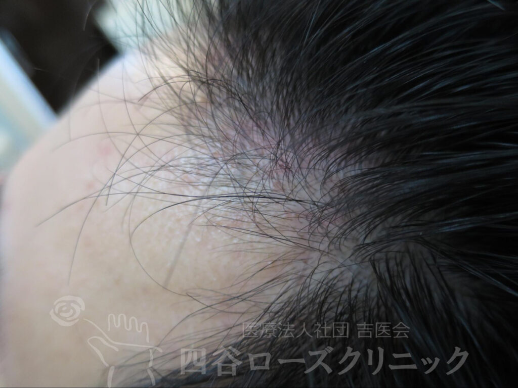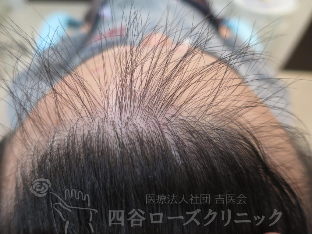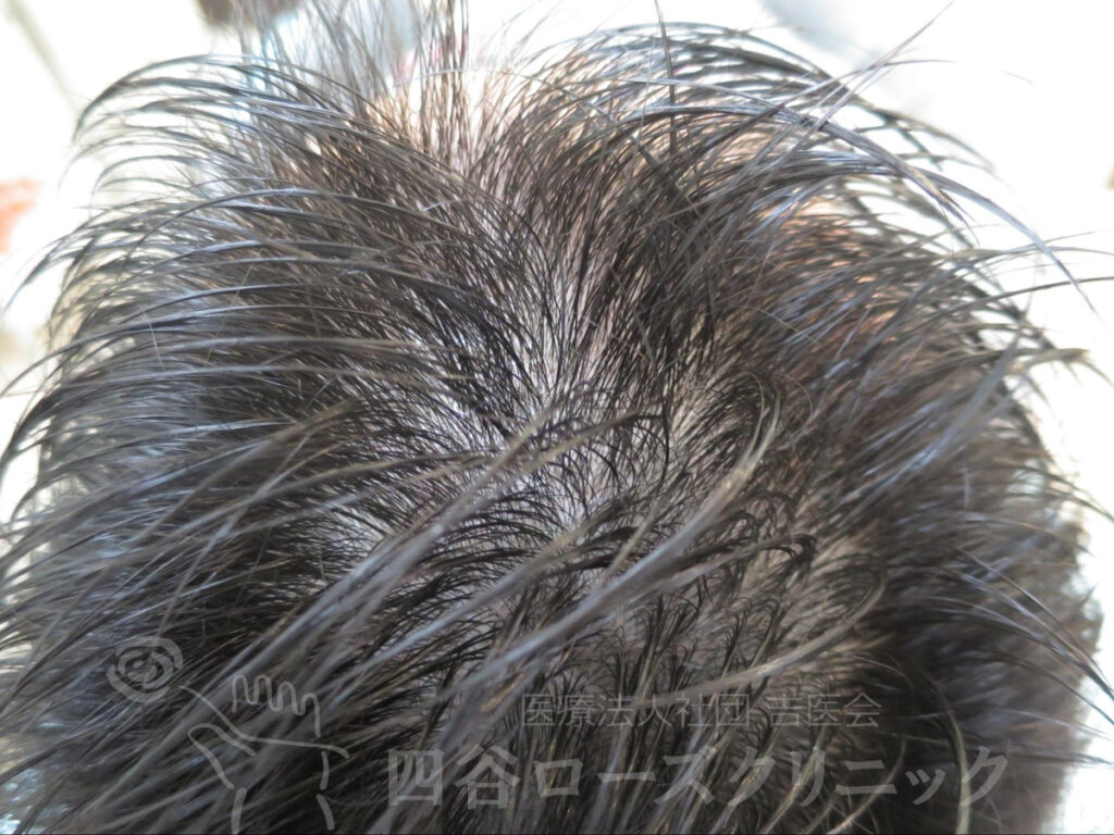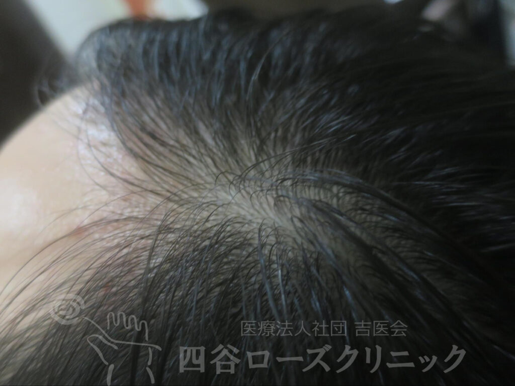 父方祖父、父がAGAなので、薄毛を警戒していた。将来が薄毛になると考えると精神的に辛いので、軽症のうちに治療を希望。親と相談して当院を受診。まだAGAが始まったばかりであったので、4ヵ月で軽快。以後年1、2回のメンテナンスを続けているだけで約10年維持出来ている。