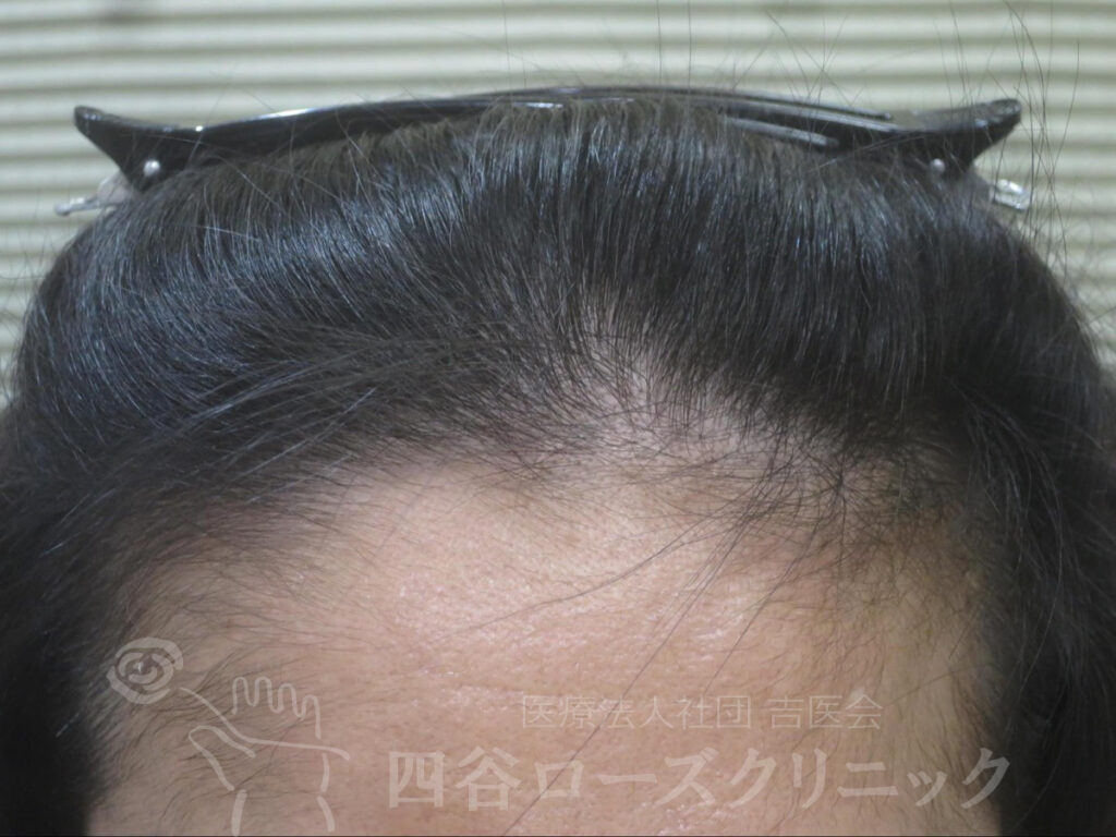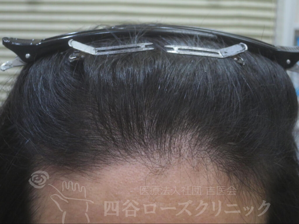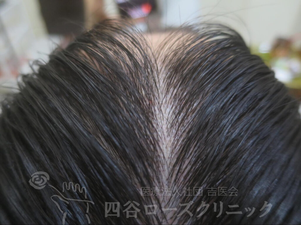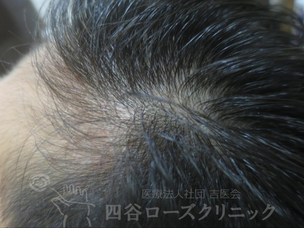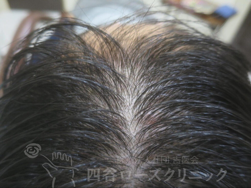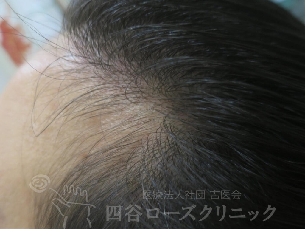 母方祖父がAGA。医療従事者。20歳からプロペシア、27歳からデュタステリド、ミノキシジルを内服したが、効果なく中断。他院でHARG療法を受けたが効果がなかった。当院で6回HARG療法の施術を受け、満足するほど発毛した。