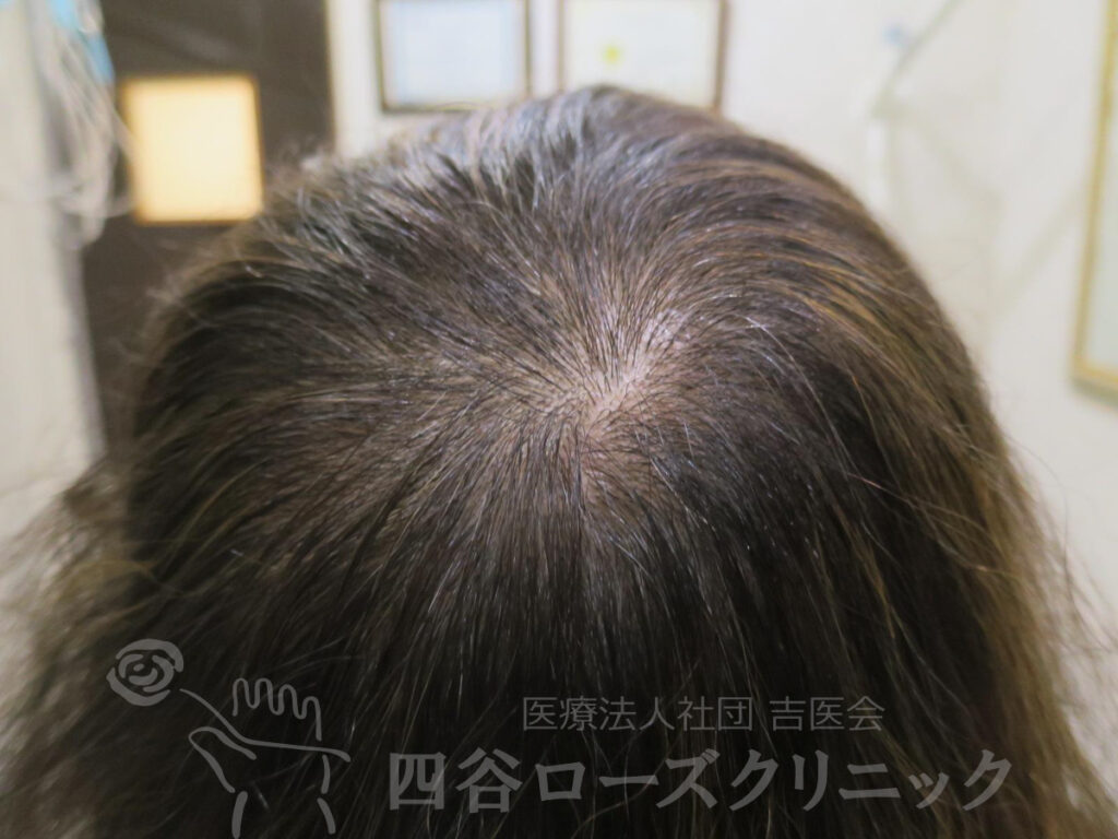 治療に対する反応は良好で、6回の施術で満足するほど毛量が増加した。更年期の抑うつ傾向もかなり改善したとのこと。