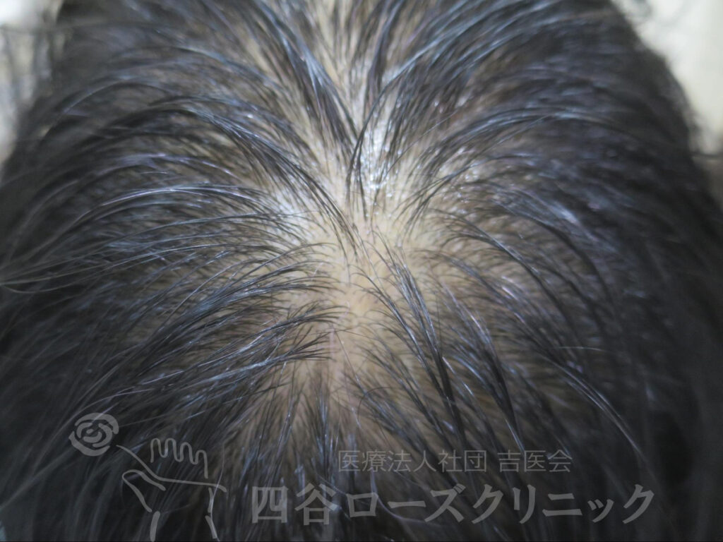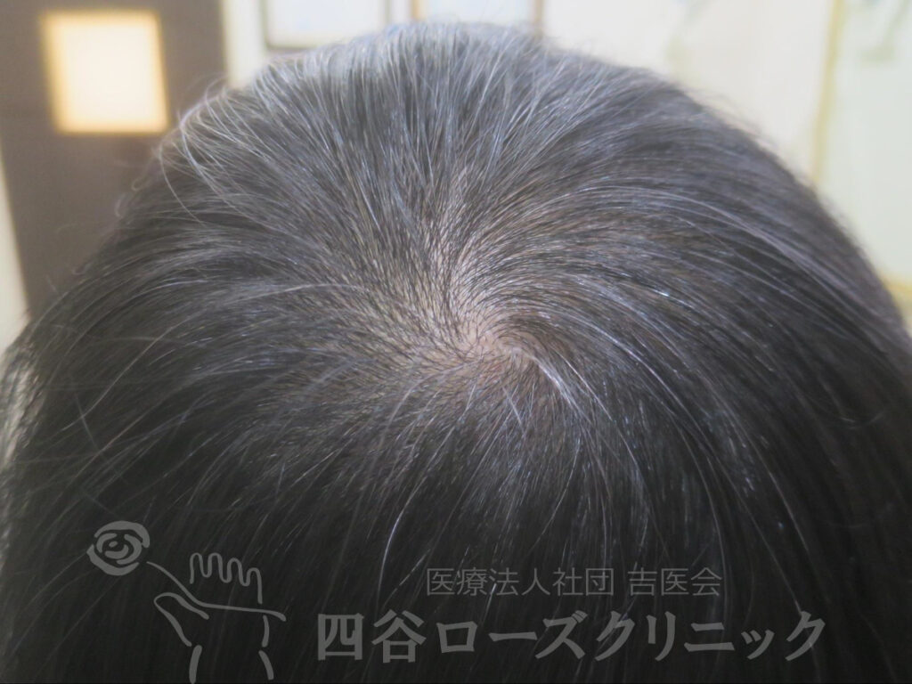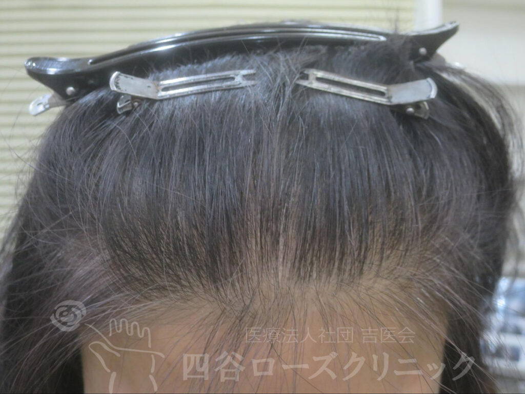 未治療。特に前頭部が中等症~重症なので治療に時間がかかることを説明して治療を開始した。治療に満足するまでに予想通り1年半以上を要した。