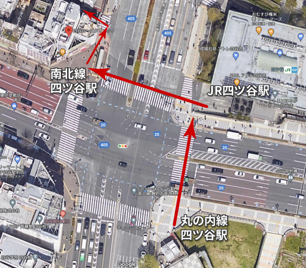 JR中央線快速で「四ツ谷駅」へ5分